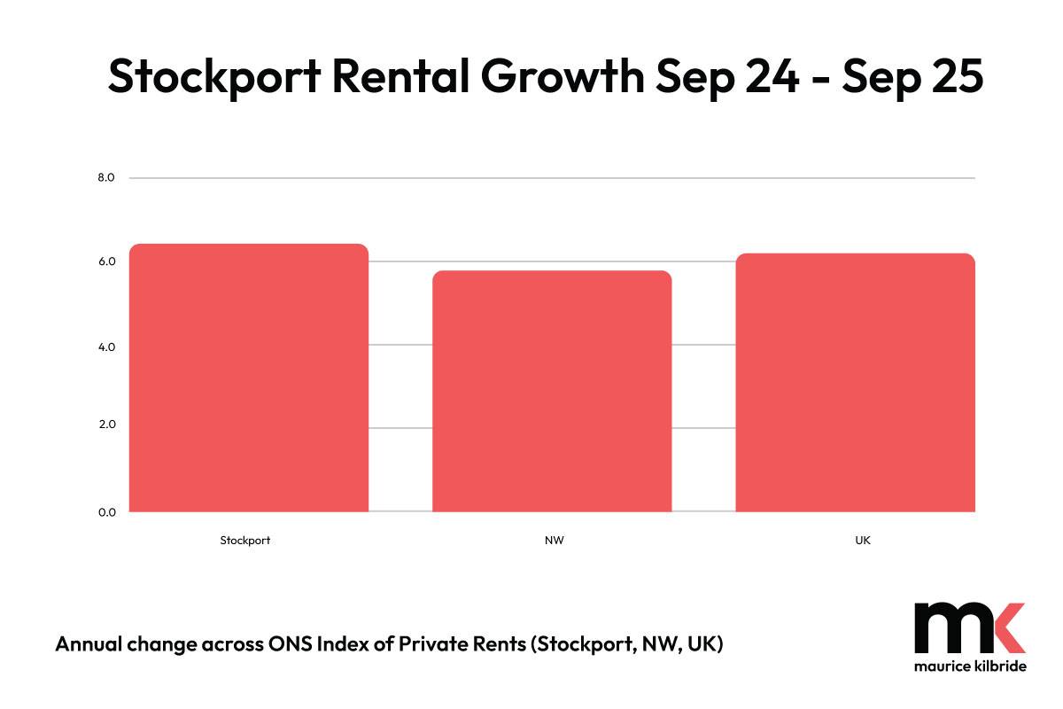 Supply levels: Stockport listings were up 9% on the year, less than the 16–19% seen in southern markets, helping to support local pricing.