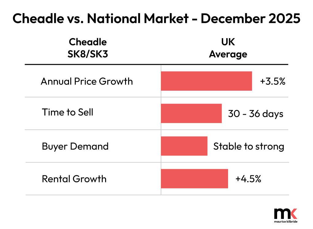 The fundamentals for Cheadle and the wider Stockport area remain very strong – excellent schools, strong transport links, local amenities and continued demand from people moving out of pricier suburbs. That underpins both capital values and rental demand over the longer run.